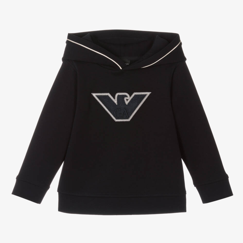 In navy blue, this relaxed hoodie for boys is designed by Emporio Armani. Made in luxe Milano jersey, it has a GA Eagle logo appliqué on the chest for an instantly recognisable, branded look.