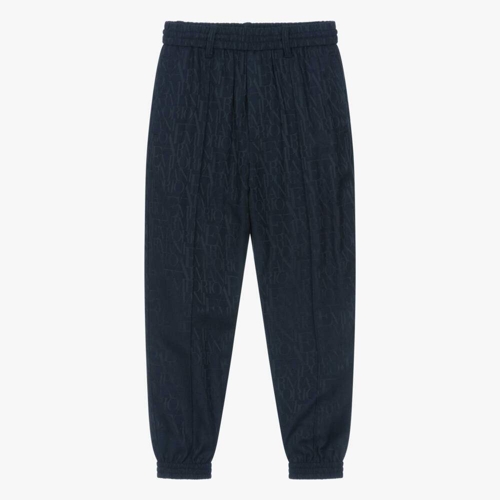 Boys Navy Blue Jacquard Monogram Trousers