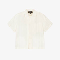 Sleek navy blue shacket for boys by Italian brand Emporio Armani, made in mid-weight, ribbed cotton jersey for endless comfort. Designed in a cool, relaxed fit, this versatile layering piece fastens with tonal branded poppers and has an embroidered Eagle logo patch on the chest pocket for subtle brand recognition.