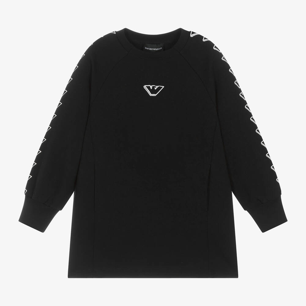 Ideal for a casual style, this black sweatshirt dress for girls by Emporio Armani is part of their EA Crew capsule. In a cool sketch-style, there are white Eagle logos printed on the chest and down each of the raglan long sleeves for a signature finish. Made from soft mid-weight cotton jersey, it has discreet pockets on the front and a boxy fit.