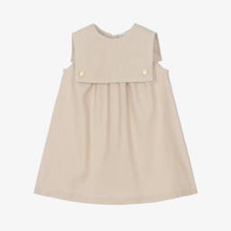 Pink polo-style dress for girls by luxury brand Emporio Armani, made in soft, lightweight, silky viscose satin. In a stylish shade of dusky pink, it features an all-over EA logo pattern for instant brand recognition. The dress has a ribbed collar and cuffs with contrasting tipping and a classic buttoned half-placket. There are useful front pockets and inverted pleats on the front and back for a lovely silhouette.