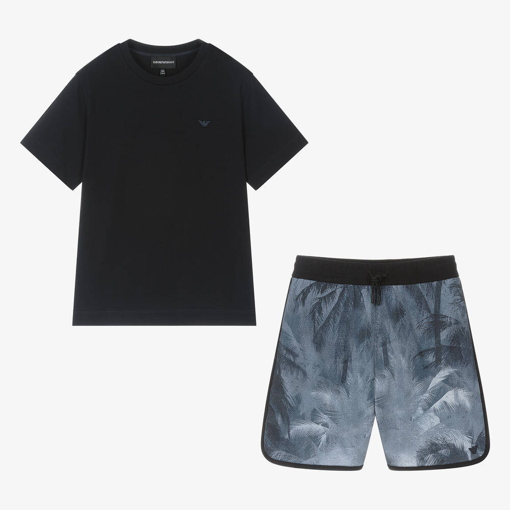 Teen Boys Blue Palm Tree Cotton Shorts Set