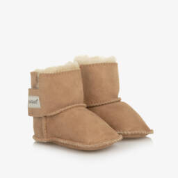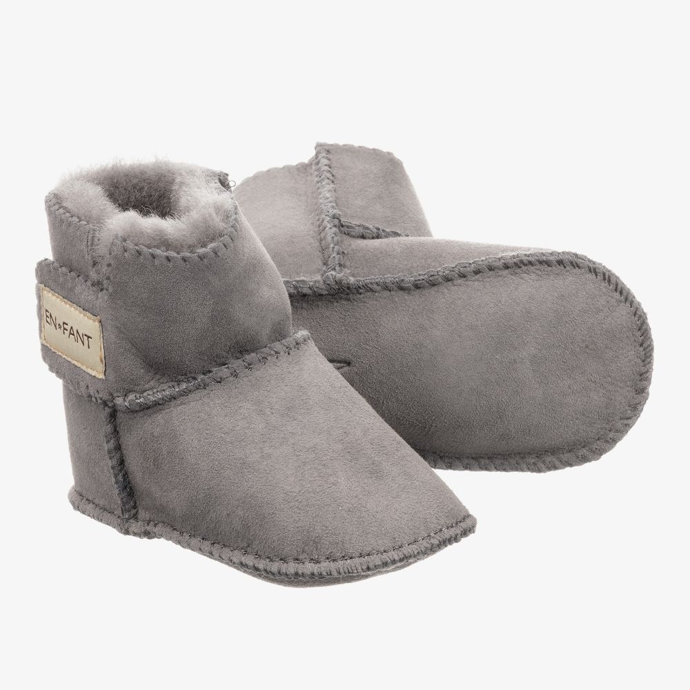 Baby boys and girls grey super snug, sheepskin fleece lined booties are from En Fant. These booties are crafted with the seams on the outside so that there are no rough edges inside, just soft fluffy fleece. The velcro fastening helps to put them on and off easily.