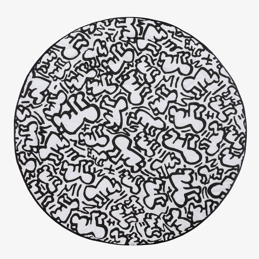 A reversible padded playmat for baby boys and girls by Etta Loves, made from the softest organic cotton. In collaboration with artist Keith Haring, this mat has a high contrast black and white 'Baby' pattern on one side, designed to stimulate optic vision from 0 to 4 months. The vibrant 'Brazil' reverse is created for when babies start seeing colour, helping to encourage cognitive development from 5 months onwards. This sensory surface will strengthen their neck and arm muscles, preparing your little one for crawling and sitting up.