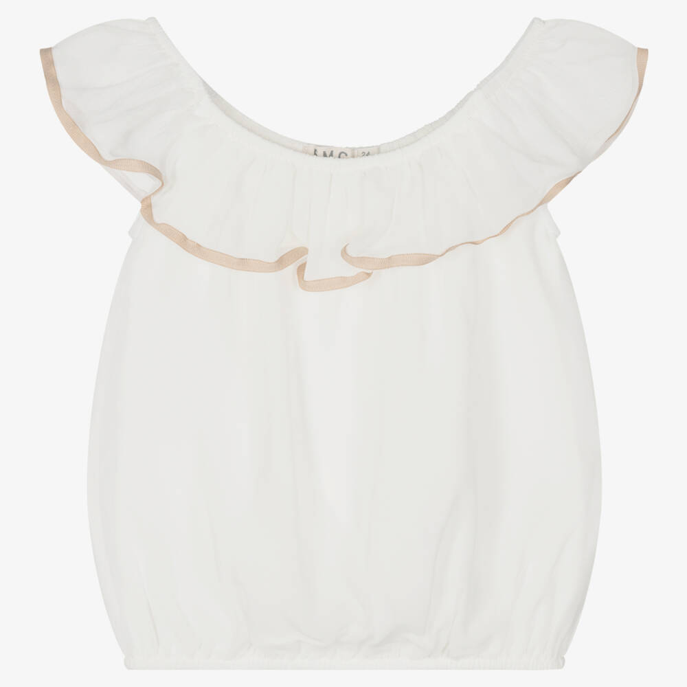 Girls Ivory Crêpe Ruffle Top