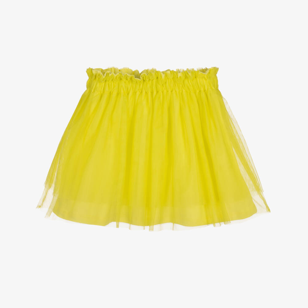 Pretty neon yellow skirt for girls by Italian brand Everything Must Change. Made in comfortable cotton jersey, it has neon yellow tulle overlays and a frilled, elasticated waistband.