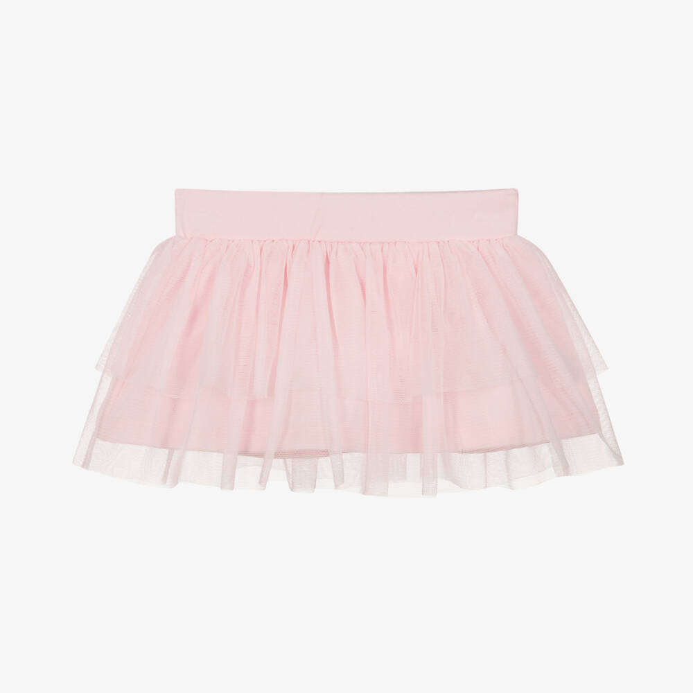 Pretty pink skirt for girls by Italian brand Everything Must Change. Made in a comfortable cotton jersey, it has pink tulle overlayers and a gently elasticated waistband.