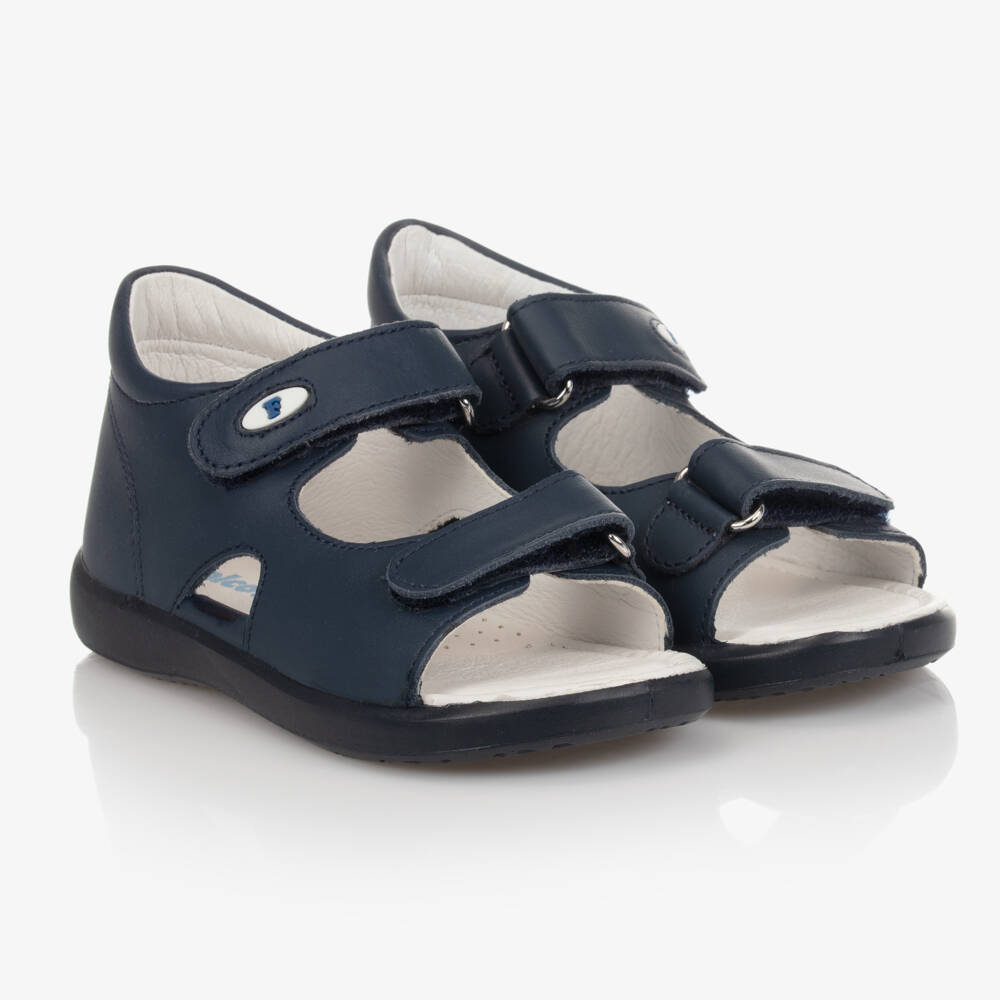 Navy blue sandals for boys and girls from Falcotto by Naturino. They are made in soft and supple leather, with a leather lining and padded leather instep for comfort. They have double velcro closing straps and a non-slip rubber outer sole.