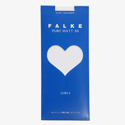White sheer tights for girls by Falke, with a matt finish. Soft and stretchy, they have reinforced toe and panty sections for durability and flat seams for a comfortable fit.