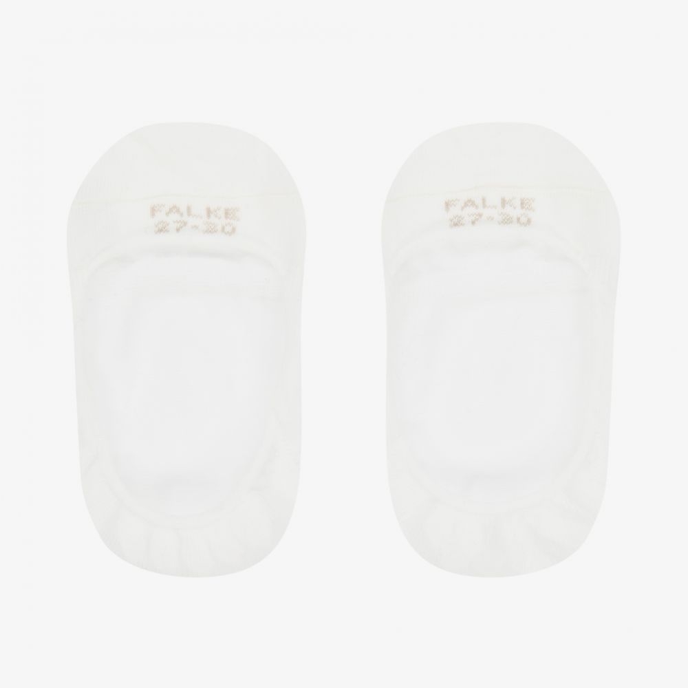 Ivory ballerina socks for girls and boys by Falke, knitted from soft cotton. With internal heel grips to prevent slippage, they have a low cut design, so that they cannot be seen when worn with most shoes.
