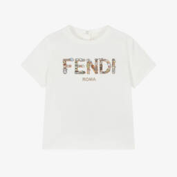 • Fendi-Baby White Cotton Fendi Bear T-Shirt | Childrensalon