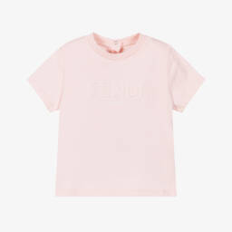 Navy blue cotton jersey T-shirt for little boys by luxury Italian brand Fendi. It features a white puffy logo print on the front for instant brand appeal. Casual and comfortable, it has a ribbed neckline and useful popper fastenings on the back.