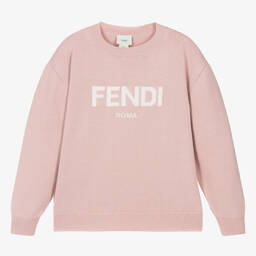 As seen in the adult collection, this beige sweater for teen boys and girls is designed by luxury Italian fashion house, Fendi. The Fendi Roma logo is featured in an intarsia design on the chest for instant branded appeal. Cosy yet lightweight, it is softly knitted in luxurious virgin wool with a classic crew neckline, long sleeves and ribbed trims.