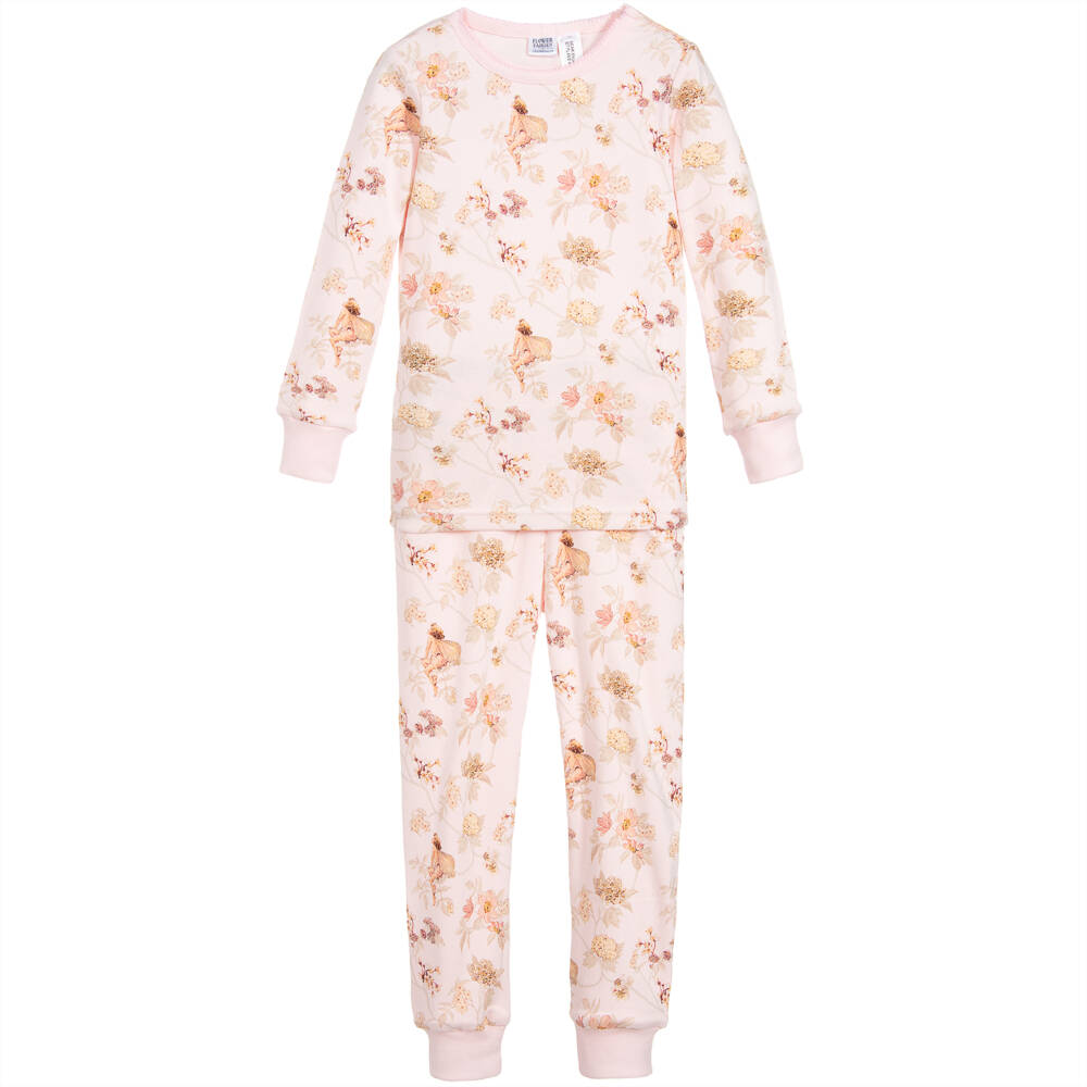 Flower Fairies™ by Childrensalon pyjamas for girls. Made in super soft pink cotton jersey, they have a delightful Flower Fairies print from the original illustrations by Cicely Mary Barker.