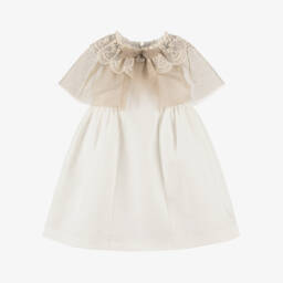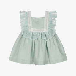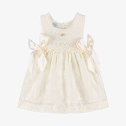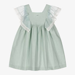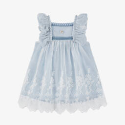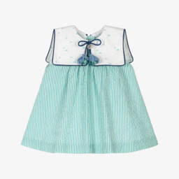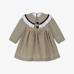 This lovely red dress for baby girls by Foque, is made in beautifully soft velvet, making it ideal for a special occasion. A sweet, timeless style, it has a pretty white lace collar, with a ruffle around the neckline and button fastenings on the back. Fully lined for comfort, it comes with a matching pair of knickers to complete the look.