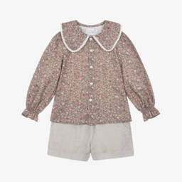 Gorgeous beige gilet for girls by Foque, made in soft, cosy sherpa fleece. This sleeveless jacket has pretty ruffles on the front and back, trimmed in orange, yellow and green floral twill. Lined in the same floral fabric for comfort and warmth, it fastens with matching buttons to complete the co-ordinated look.