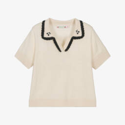 Grey hooded sweater for little boys and girls by luxury designer Bonpoint, knitted in super-soft and lightweight cashmere. It has a button fastening under the chin, cosy long sleeves and cherry logo embroidery on the front pouch pocket.