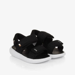 A black hoodie for boys by BOSS, made in the softest cotton jersey with a breathable looped underside. On-trend for Lunar New Year, it has a cool Bugs Bunny rabbit logo printed with an iconic 'What's up Doc?' slogan on the front, and a gold carrot embroidered on one sleeve. There are decorative drawstrings on the hood, a large pouch pocket and ribbed trims.