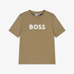 Dark beige beanie hat for boys by BOSS, made in a softly knitted double layer with a touch of wool for extra warmth. This cosy hat has a ribbed, turned-up brim and a black patch on the front with a white rubberised logo.