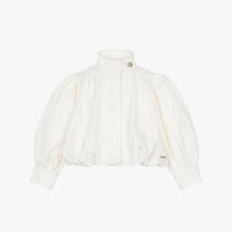A luxurious pink zip-up puffer jacket for girls by French designer Chloé, made in silky smooth recycled fabric. This cosy hooded style has embroidered flowers on the chest and logo-embossed gold-tone popper fastenings on the front and pockets. Soft ribbed trims offer added protection from the cold.