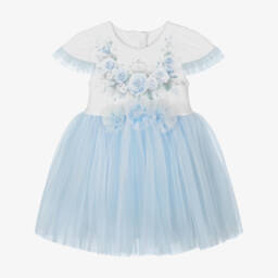 Exclusive to Childrensalon, this super cute white and pink dress for baby girls by Sofija is made in soft cotton jersey. The white top half has a pink heart-shaped flower print on the front, with matching ruffle trims on the shoulders. There is a gorgeous sparkly pink tulle overlay on the skirt, with a fixed bow. Easy dressing is ensured with an envelope neckline and poppers between the legs.