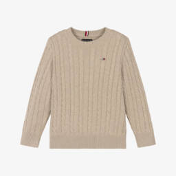 Navy blue boxy-fit sweater for boys and girls by Tommy Hilfiger, inspired by the main collection. In collaboration with Miffy, this cute design has a pointed collar and a white intarsia Miffy motif on the front. Made in a super soft wool and alpaca-blend knit, the ribbed sleeve cuffs are striped in the designer's signature colours of red, white and blue, with an embroidered flag logo detail on one sleeve.