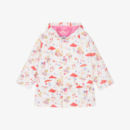 Ideal for outdoor adventures, a blue and green raincoat for boys by Frugi, patterned with a fun and colourful frog print. Fleece-lined for an extra cosy feel, this waterproof coat has welded seams and a fixed hood with elasticated trims for extra protection. There are reflective trims for visibility, useful flap pockets and a zip fastening concealed beneath a velcro fastening storm flap.