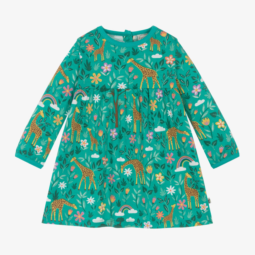 Girls Green Cotton Giraffe Print Dress