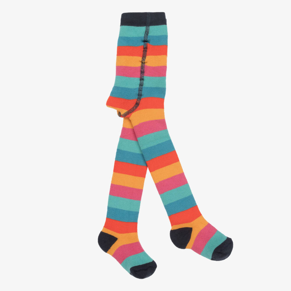 Fun and colourful, these rainbow stripe tights for little girls are by British brand Frugi. Super cosy and comfortable, they are made in soft and stretchy organic cotton, with a fluffy towelling inside and a gently elasticated waistband.