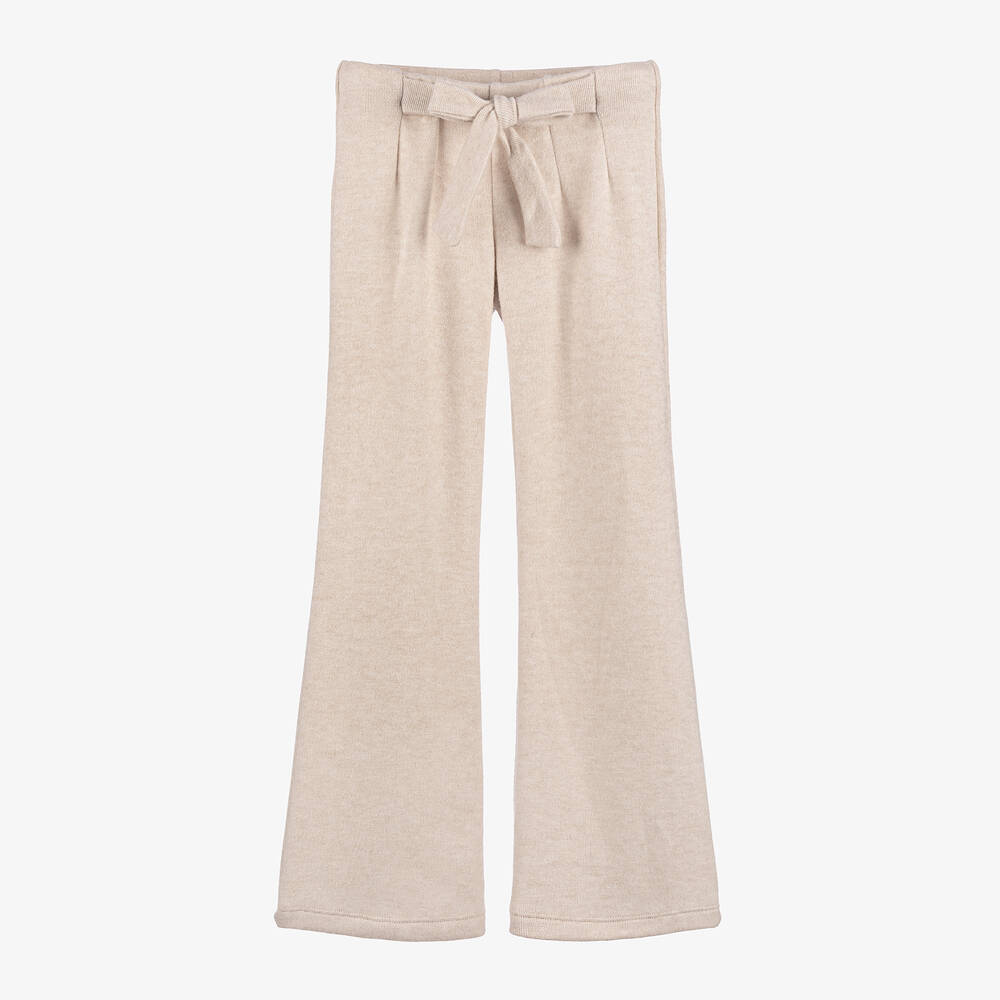 Girls Beige Knit Wide Leg Trousers