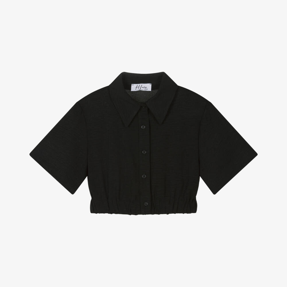 Black blouse for older girls from H.Love by Fun & Fun, made in soft fabric with a light texture. This loose-fitting top has a collared neckline and front button fastenings. The elasticated hem is designed to sit higher on the waist.
