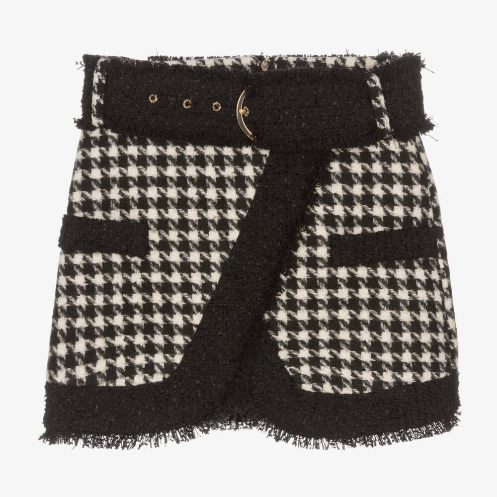 Girls Black & White Houndstooth Skirt