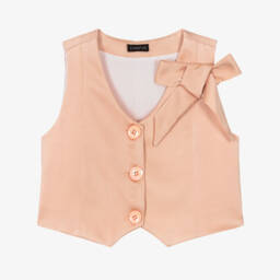 Off-white waistcoat for older girls by Fun & Fun, made in a soft cotton blend with a silky smooth feel. It features classic button fastenings and decorative pockets for a chic, tailored look.