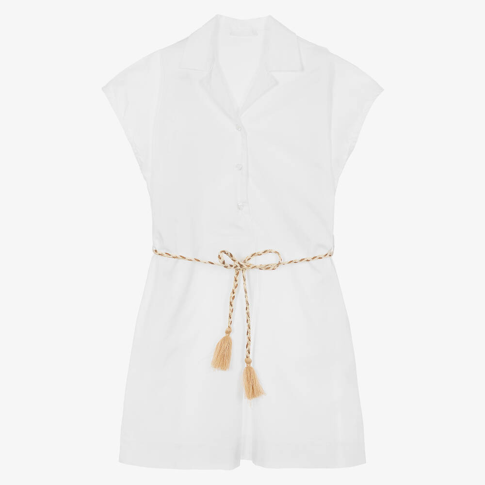 Girls White Cotton Poplin Shirt Dress