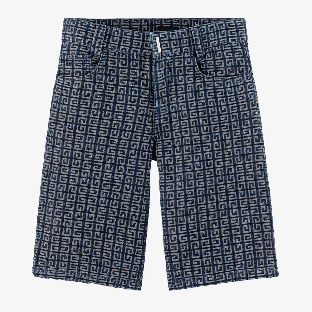 Boys Blue Jacquard Denim 4G Shorts