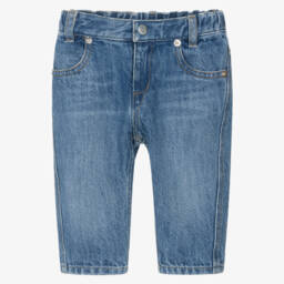 Blue cotton blend leggings for little girls by luxury brand Givenchy, with the look of denim and the comfort of jersey. Easy to wear, they have an elasticated waistband with a decorative silver popper and front patch pockets, one with an embroidered glittery silver 4G logo for instant brand appeal.
