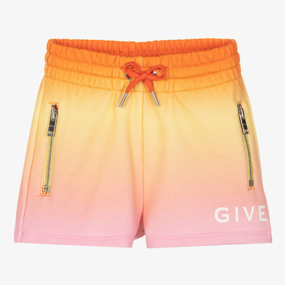 Casual and stylish for girls, these Givenchy shorts have a beautiful ombré effect in shades of orange, yellow and pink. For unmistakable designer appeal, they have the luxury French brand's white logo print on one leg, a 4G logo on the back and branded metalware. Beautifully comfortable, they are made in soft cotton sweatshirt jersey with an elasticated drawstring waist for an adjustable fit. Useful zip-up pockets complete the look.