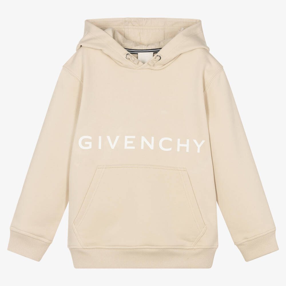 As seen in the menswear collection, this beige cotton hoodie for teen boys is by luxury designer Givenchy. Logo graphics enhance this cool piece, with white signature branding on the front and the label's iconic 4G logo stamped on the back. It is crafted in super-soft and stretchy, medium-weight jersey, with a faux drawstring detail and front pouch pocket for lasting comfort.