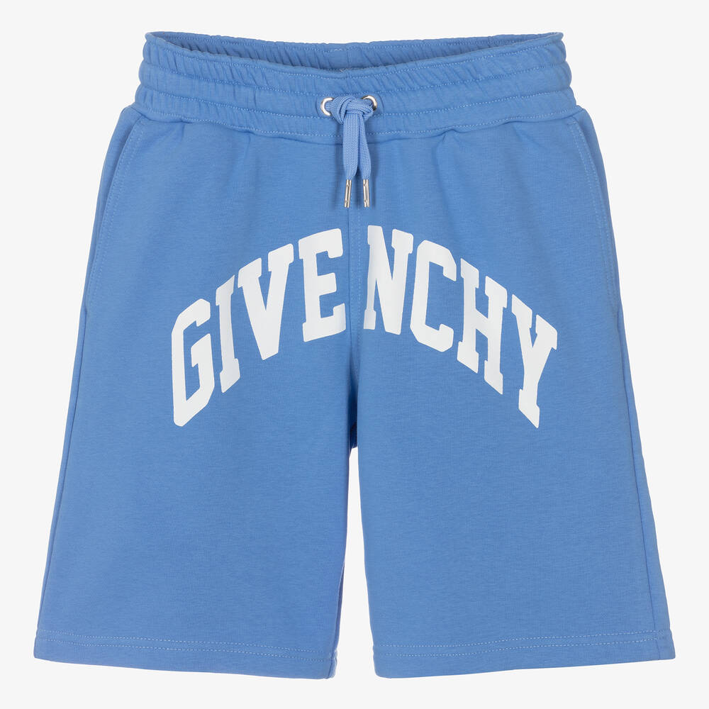 In a cool, sporty and relaxed style, these Mini-me blue shorts for teen boys are by luxury designer Givenchy. For a signature look, there is a bold white Varsity-style logo printed on the front and a small 4G logo on the back pocket. Comfortable to wear, they are made from soft cotton sweatshirt jersey, have slanted pockets, and a drawstring with logo end-caps on the elasticated waist for a great fit.
