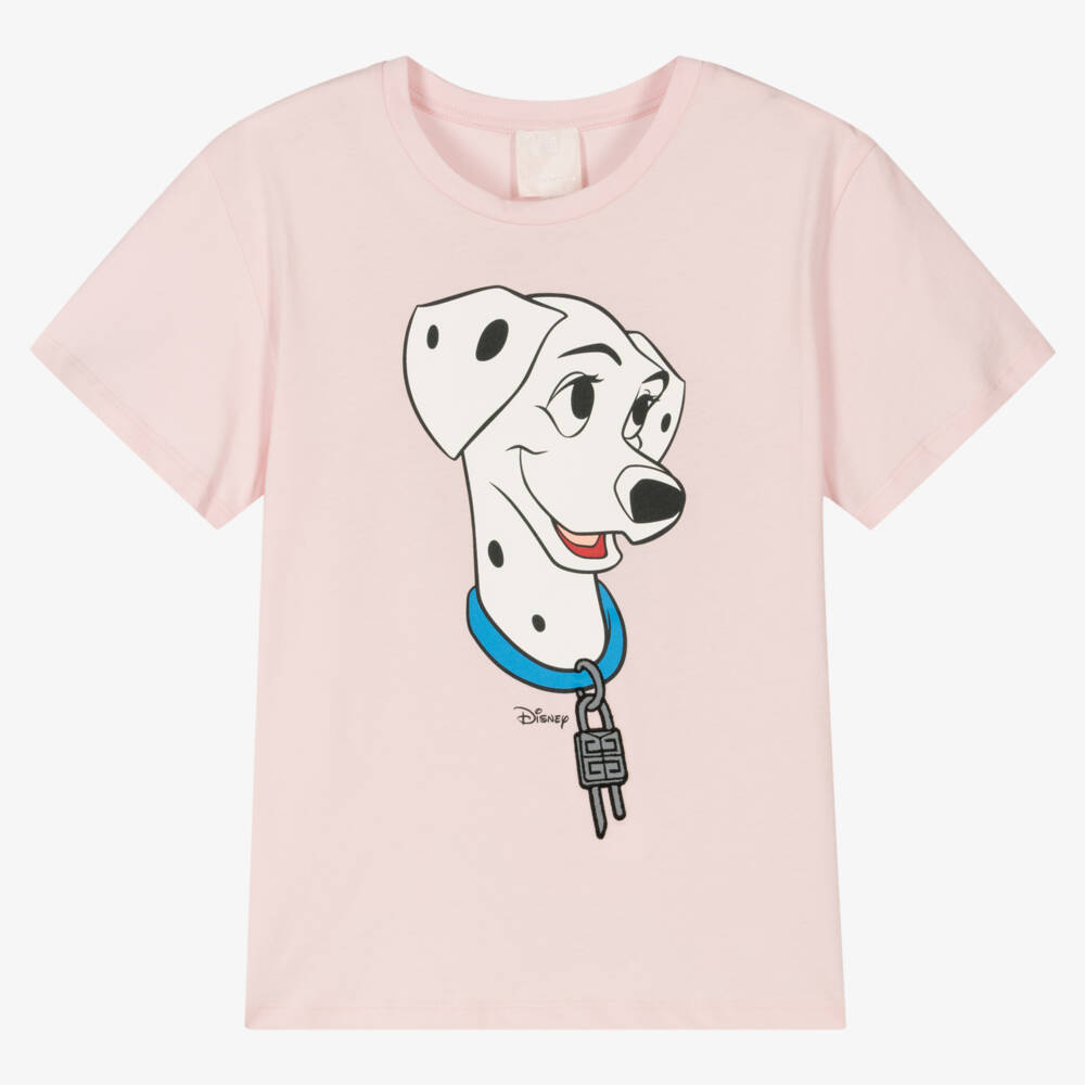 A light-pink cotton T-shirt for teen girls from French fashion house Givenchy, made in soft jersey. In collaboration with Disney, this cool piece is designed with 101 Dalmatians' Perdy printed on the front, detailed with an edgy grey 4G padlock on her collar for instant brand recognition. Decorating the back are the luxury label's embroidered logo lettering and a distinctive 4G graphic on the hem.