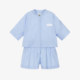 Lovely three-piece shorts set for baby boys and girls by Givenchy, made in the softest cotton jersey, ideal for delicate skin. In a lovely shade of white, the shorts and bandana have a grey 4G logo print and drawstring waistband. The T-shirt has a matching teddy appliqué with 4G print and useful shoulder popper fastenings. Coming in a branded box, this sweet set will make an ideal gift.