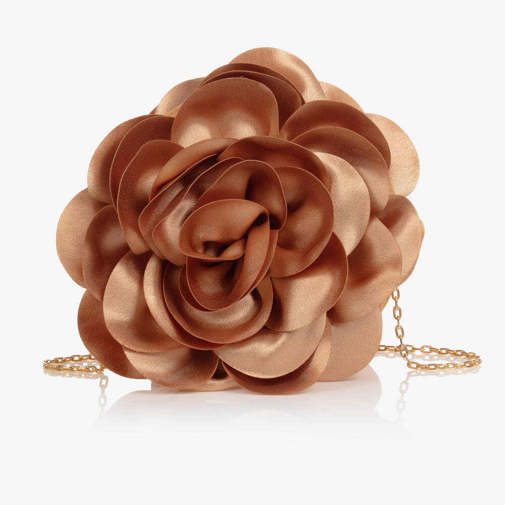 Exclusive to Childrensalon, beautiful gold shoulder bag for girls from Spanish brand Graci, made from layers of silky smooth satin for the effect of petals. This stunning bag has a fixed gold chain strap adding glamour to the overall look, and the compartment secures closed with easy-to-use velcro.