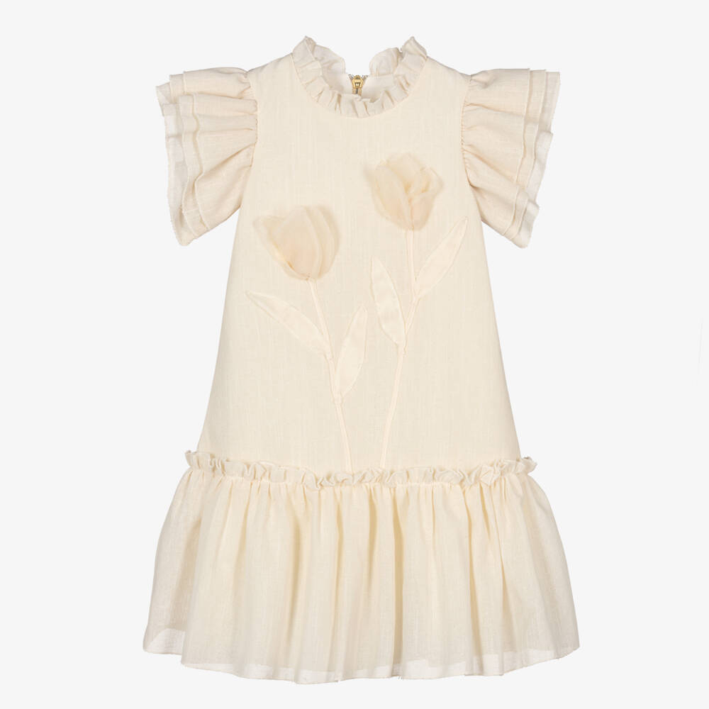 Girls Ivory Floral Cotton Dress