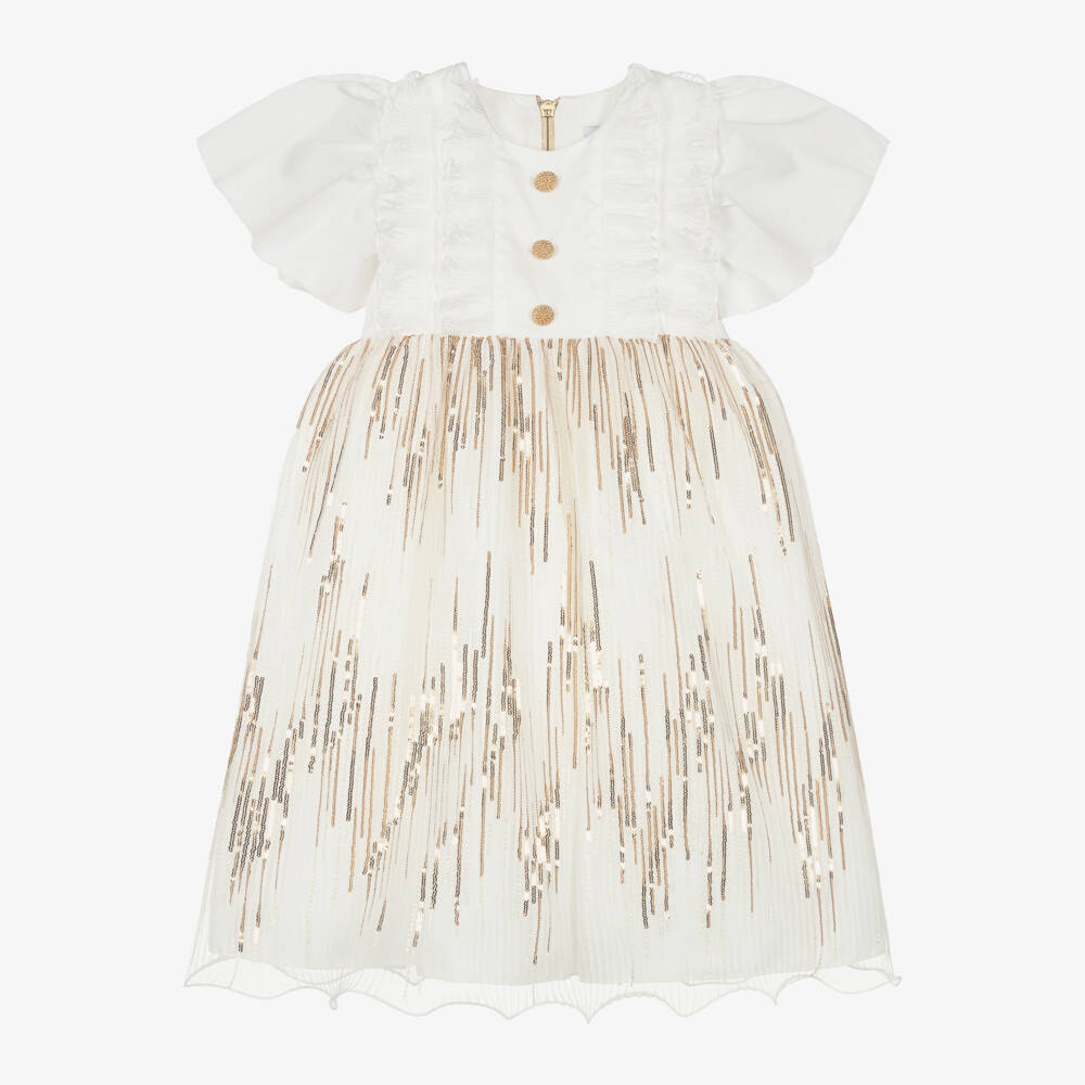 Girls White & Gold Sequin Dress