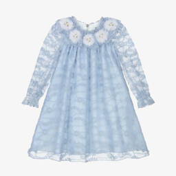 A stunning special occasion dress for girls by Graci, made in white organza with a silver jacquard check pattern. Exclusive to Childrensalon it is designed to shimmer beautifully in the light. This A-line style is decorated on the neckline with silver glitter butterfly brooches, removable for an alternative look. The dress has an exposed zip fastening on the back, with a satin underlayer and a tulle-trimmed cotton lining for added volume.
