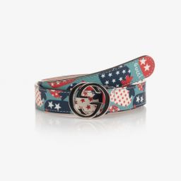 Luxury elasticated belt from Gucci, made in the brand's classic blue and red Web, with navy blue leather trims. This mini version of the adult style secures with a hypoallergenic palladium Double G logo buckle in silver finish.