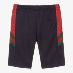 Brown, beige and ivory striped shorts for little boys and girls by luxury designer Gucci, comfortably knitted in soft wool. For instant designer appeal, they are patterned with the Italian label's brown logos. This easy-to-wear style is complete with a stretchy, elasticated waistband.