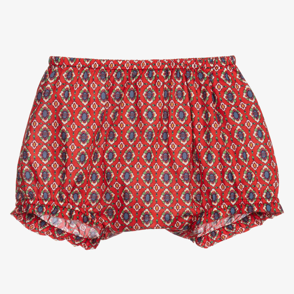 Girls Red Floral Cotton GG Bloomer Shorts