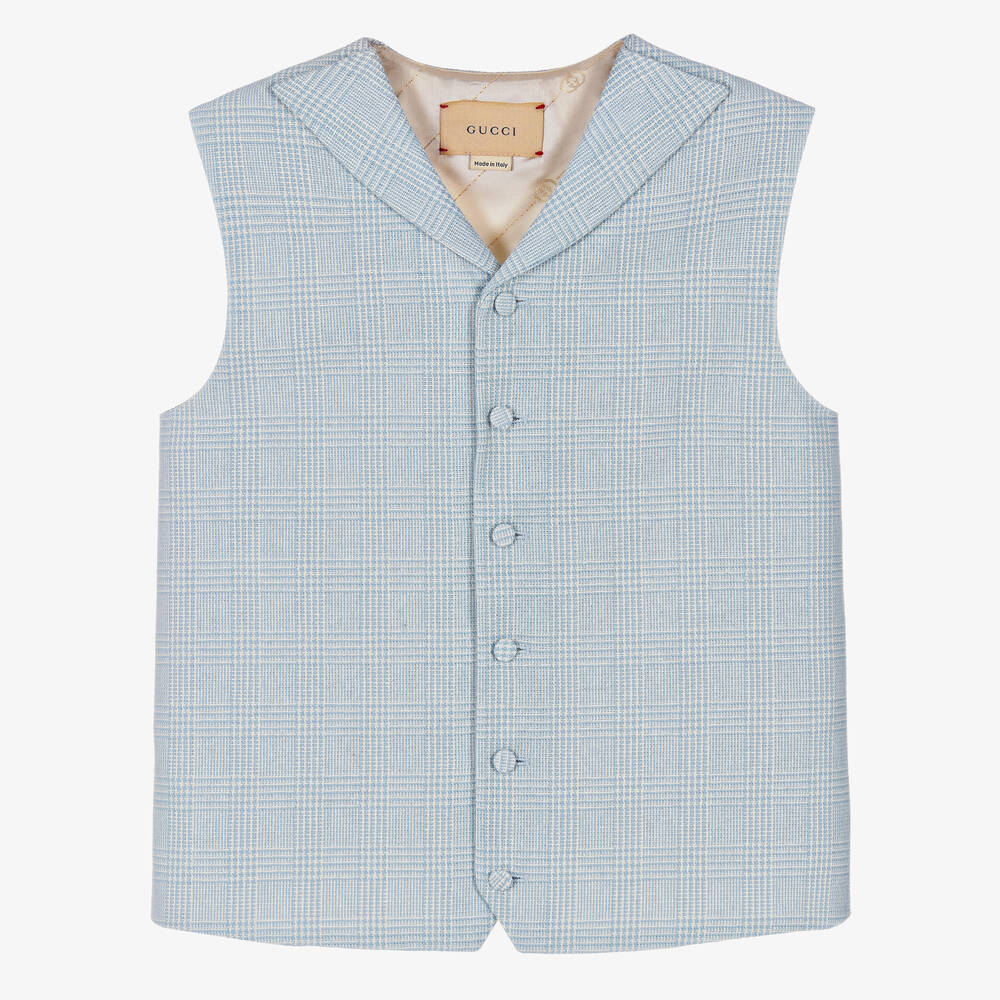 Teen Boys Blue Interlocking G Check Waistcoat