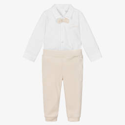 Baby Boys Ivory & Beige Cotton Knit Trouser Set